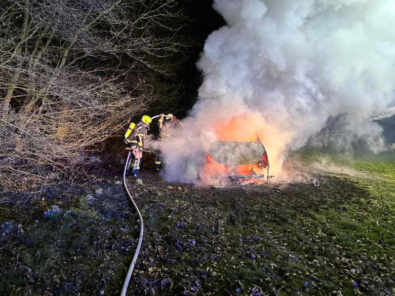 Am Freitag, den 01. März 2024, gegen 01:51 Uhr, geriet aus bislang unbekannter Ursache ein abgestellter PKW in der Straße "Am Dorfplatz" in Cloppenburg in Brand. Das Feuer konnte durch die Kräfte der Feuerwehr, welche mit drei Fahrzeugen vor Ort war, gelöscht werden. An dem Fahrzeug entstand wirtschaftlicher Totalschaden.