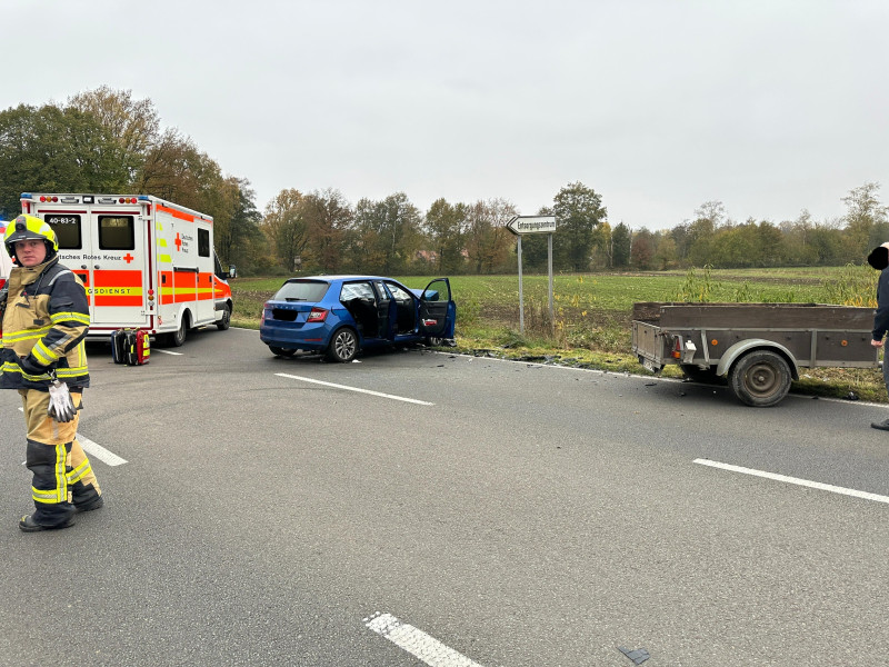 Nach derzeitigem Ermittlungsstand bog ein Gespann aus PKW Hyundai und Anhänger von der Straße Keemoor auf die vorfahrtsberechtigte B68 auf. Hier wurde durch den Fahrzeugführer (männlich, 77 Jahre) ein PKW Skoda der auf der B68 in Fahrtrichtung Cloppenburg fuhr übersehen. Es kam zum Zusammenstoß der PKW. Im PKW Skoda wurde der Mitfahrer eingeklemmt. Er wurde durch die Feuerwehr Cloppenburg gerettet und lebensgefährlich verletzt mit dem Rettungshubschrauber in ein Krankenhaus geflogen. Die Fahrzeugführerin des Skoda (weiblich, 84 Jahre) sowie Beifahrerin (weiblich, 55 Jahre) wurden leicht verletzt, die Insassen des Hyundai wuden beide leicht verletzt. Alle Leichverletzten wurden in umliegende Krankenhäuser verbracht. Die PKW wurden abgeschleppt, die Schadenshöhe wird auf 15000 Euro geschätzt.