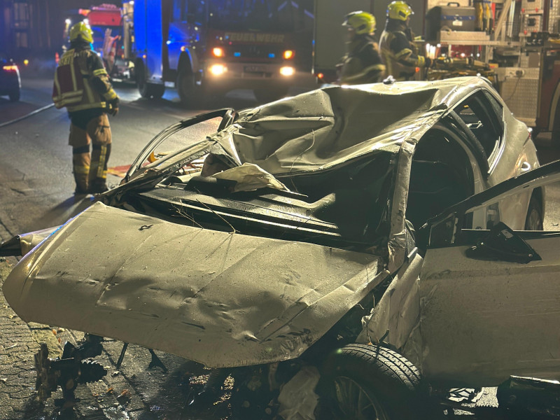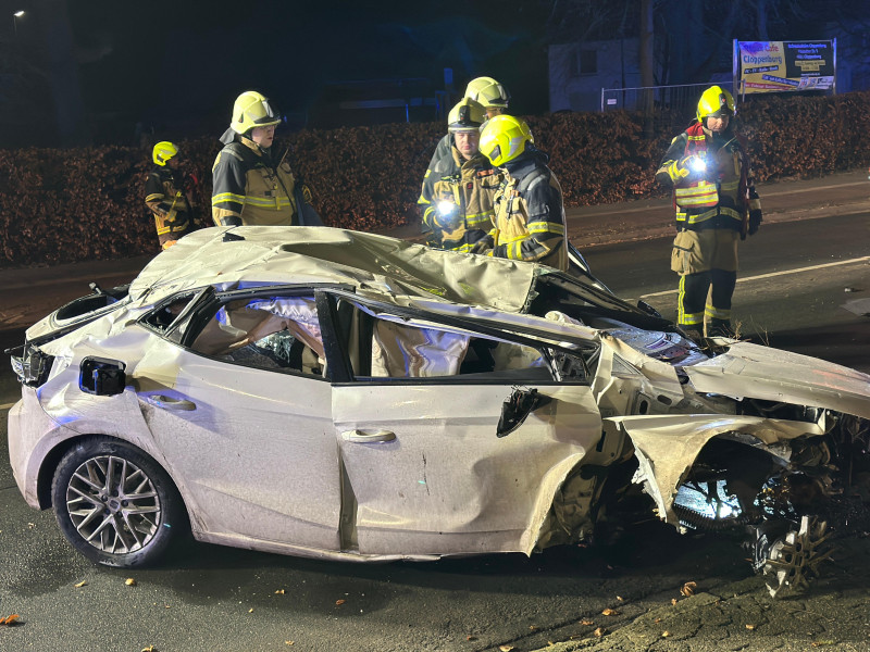 Verkehrsunfall mit einer tödlich verletzten Person Am frühen Dienstagmorgen, 21.01.2025, um 00:05 Uhr ereignete sich auf der Friesoyther Straße ein schwerer Verkehrsunfall, bei dem eine Person tödlich verletzt wurde. Ersten Erkenntnissen zufolge befuhr ein 57-jähriger PKW-Fahrer aus Firrel im Stadtgebiet Cloppenburg die Friesoyther Straße aus Richtung Friesoythe kommend in Fahrtrichtung Stadtmitte/Antoniusplatz. Aus bislang ungeklärter Ursache überfuhr der Fahrzeugführer mit überhöhter Geschwindigkeit den Kreisverkehr Friesoyther Straße/Westerlandstraße/Soestenstraße, hob aufgrund der Bebauung mit seinem PKW ab und schlug mehrere Meter hinter dem Kreisverkehr mit dem Dach des Fahrzeugs auf der Fahrbahn auf. Der Fahrer zog sich dabei tödliche Verletzungen zu und musste durch die Feuerwehr Cloppenburg aus seinem PKW geborgen werden. An dem PKW und der Kreiselbebauung entstand erheblicher Sachschaden. Für den Zeitpunkt der Unfallaufnahme war die Fahrbahn für mehrere Stunden gesperrt.