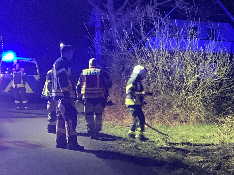 Zum zweiten Mal am heutigen Abend führte uns der Weg in den Brookweg, 200m von der alten Einsatzstelle brannte Unterholz sowie eine Fläche. Nach gut einer halben Stunde war der Einsatz für uns erledigt.