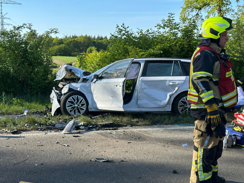 Schwerer Verkehrsunfall auf der B213 – sechs Verletzte, darunter ein Eingeklemmter