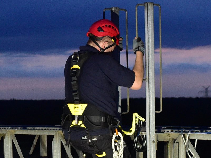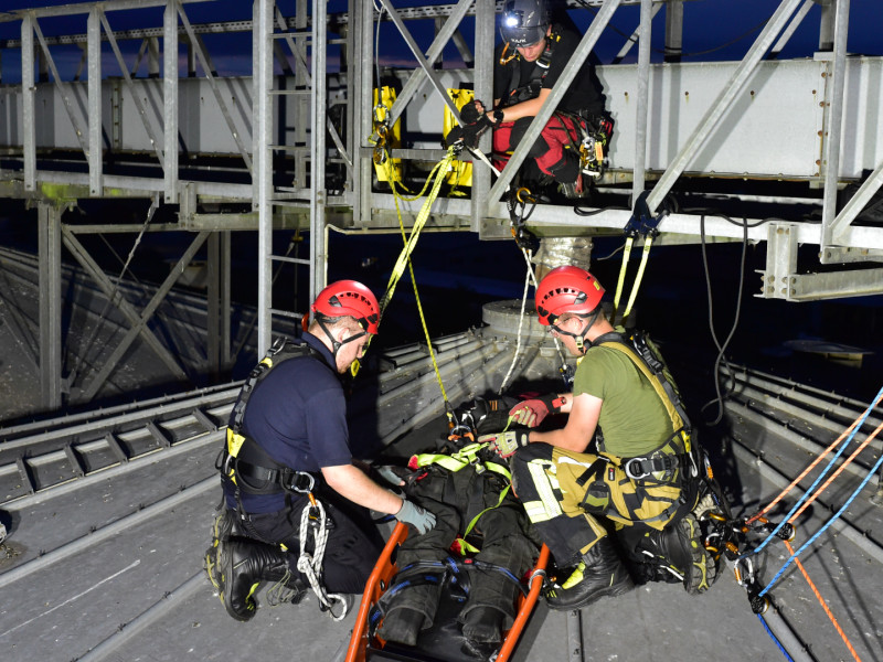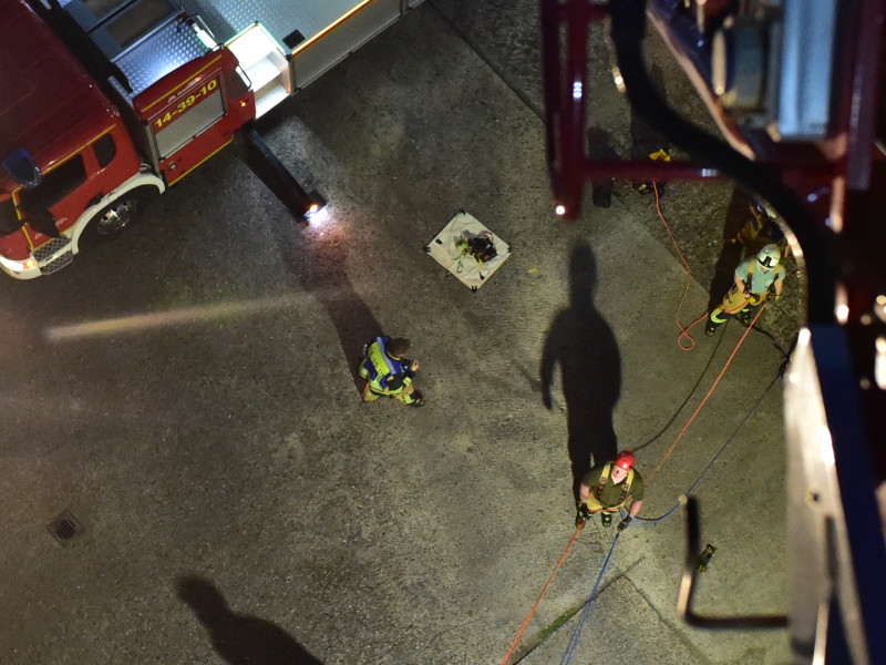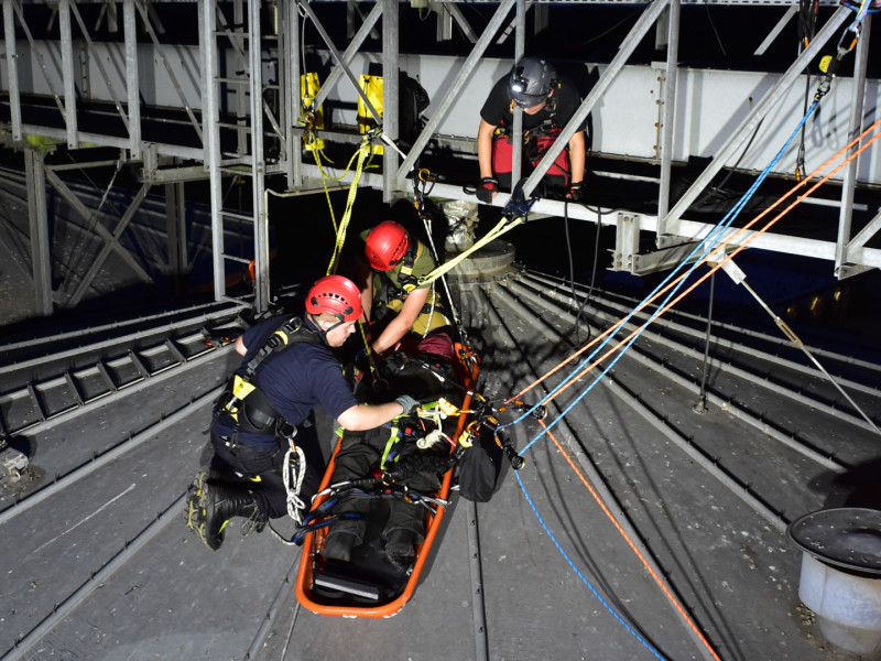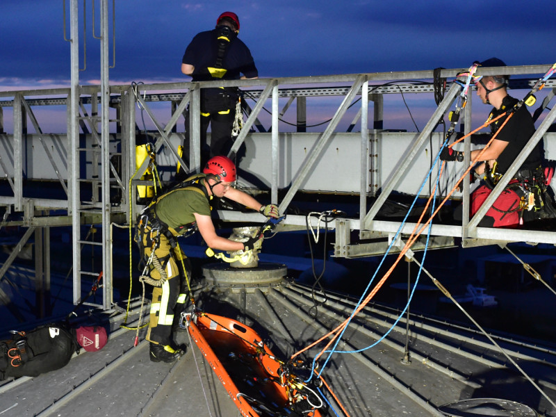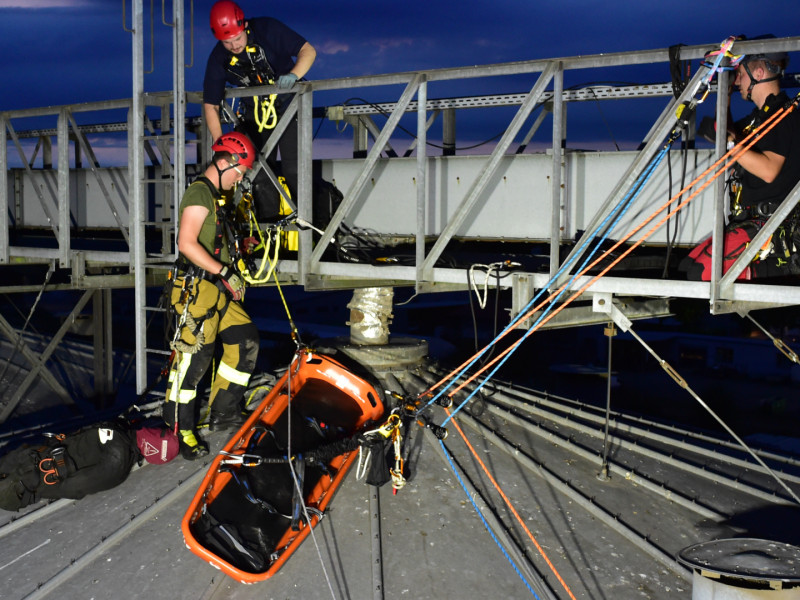 Der Betriebsleiter berichtete, er hätte Kontakt zu einem Mitarbeiter auf dem Dach der Mühle, könne ihn aber nicht verstehen. Zudem vermisste er einen Wartungstrupp, die auf den Silos gearbeitet haben. Es stellte sich heraus, dass einer der Arbeiter beim Abstieg vom Silo gestürzt war und verletzt im Rückenschutzkorb der außen am Silo verlaufenden Leiter hing. Sein Kollege hatte sich das Knie verletzt und lag auf dem Silodach.
