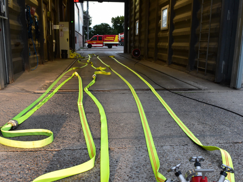Zu den Gegebenheiten: Im Industriegebiet laufen derzeit umfangreiche Instandsetzungsarbeiten des OOWV. Eine Wasserentnahme aus dem öffentlichen Netz war daher nicht möglich. Es mussten alternative Quellen genutzt werden, etwa die große Zisterne in der Nähe, außerdem Brunnen und Regenrückhaltebecken.
