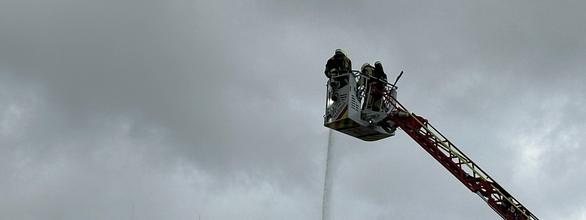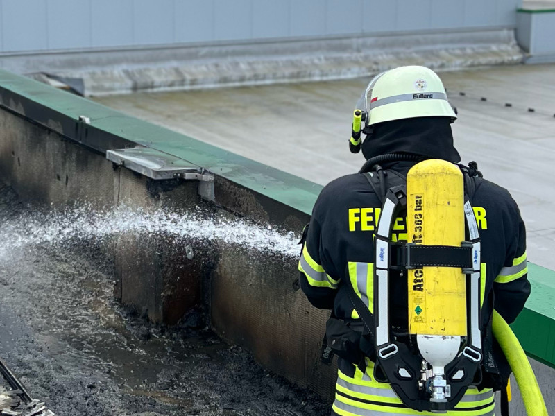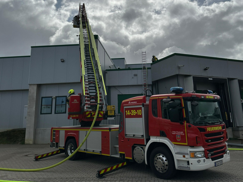 Nach dem Eintreffen an der Einsatzstelle wurde die Drehleiter unmittelbar in Stellung gebracht. Der Einsatzschwerpunkt für unsere Kräfte lag in der Brandbekämpfung über den Korb der Drehleiter, wobei ein Atemschutztrupp unter Einsatz eines D-Strahlrohrs die Flammen effektiv niederschlug. Begleitend wurden durch das Personal fortlaufende Kontrollmaßnahmen zur Identifikation möglicher Glutnester durchgeführt. Zur finalen Abarbeitung des Einsatzes diente die Drehleiter anschließend als Steigleiter, um den Einsatzkräften einen sicheren Zugang für gezielte Nachlöscharbeiten auf der Dachfläche zu ermöglichen.