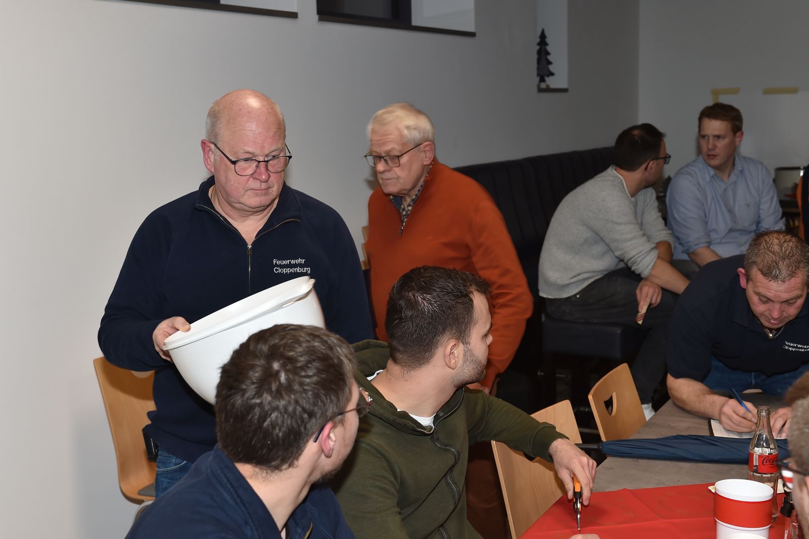Nicht alle Jahre wieder, aber dieses Jahr sicherlich ein Highlight: die Verlosung der neuen Spindplätze. Jeder Kamerad konnte eine Nummer aus dem großen Lostopf ziehen und damit die neue "Heimat" seiner Einsatzklamotten nach dem Umbau unseres Feuerwehrhauses auswählen.