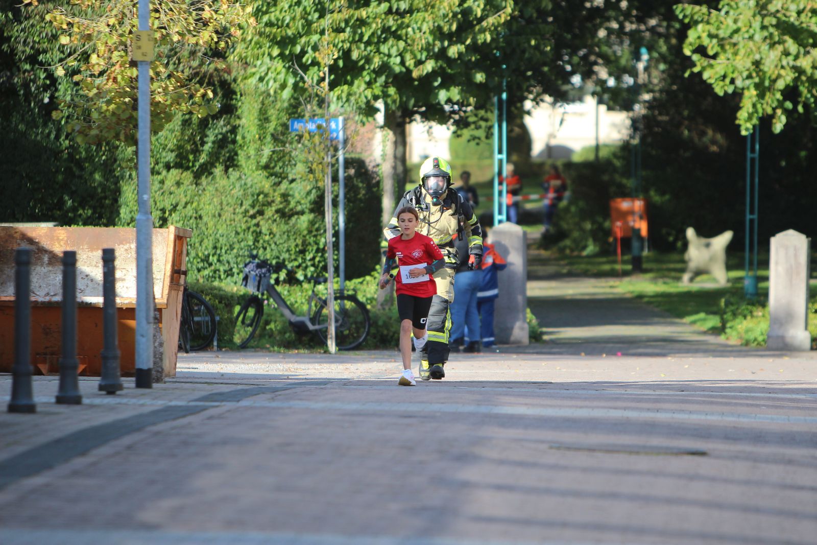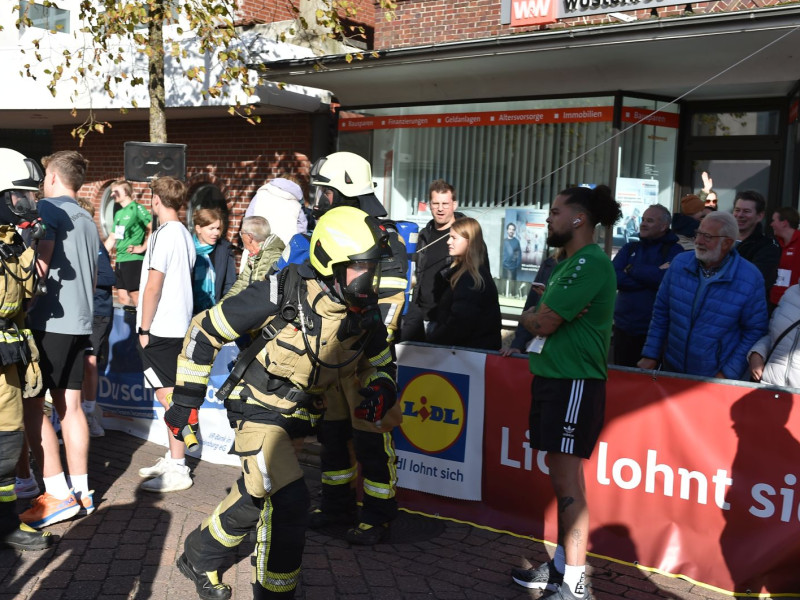 Ein ganz normaler Dienstabend. Mehrere Feuerwehrkameraden hatten die Idee, mal ihre Fitness zu testen – und das nicht mit einem gemütlichen Spaziergang, sondern mit dem jährlichen Citylauf. Natürlich nicht in ihren bequemen Jogginganzügen, sondern in voller Einsatzkleidung. Und zack, die ersten Teilnehmer haben sich gemeldet und wir haben den Plan realisiert. Sie entschieden sich für den Sechs-Kilometer-Lauf. So stand der Plan. Dann kamen vier Leute aus der Runde und haben vorgeschlagen, dass wir doch den Staffellauf mit Atemschutz machen könnten. Manchmal sind spontane Ideen die besten. Gesagt, getan.