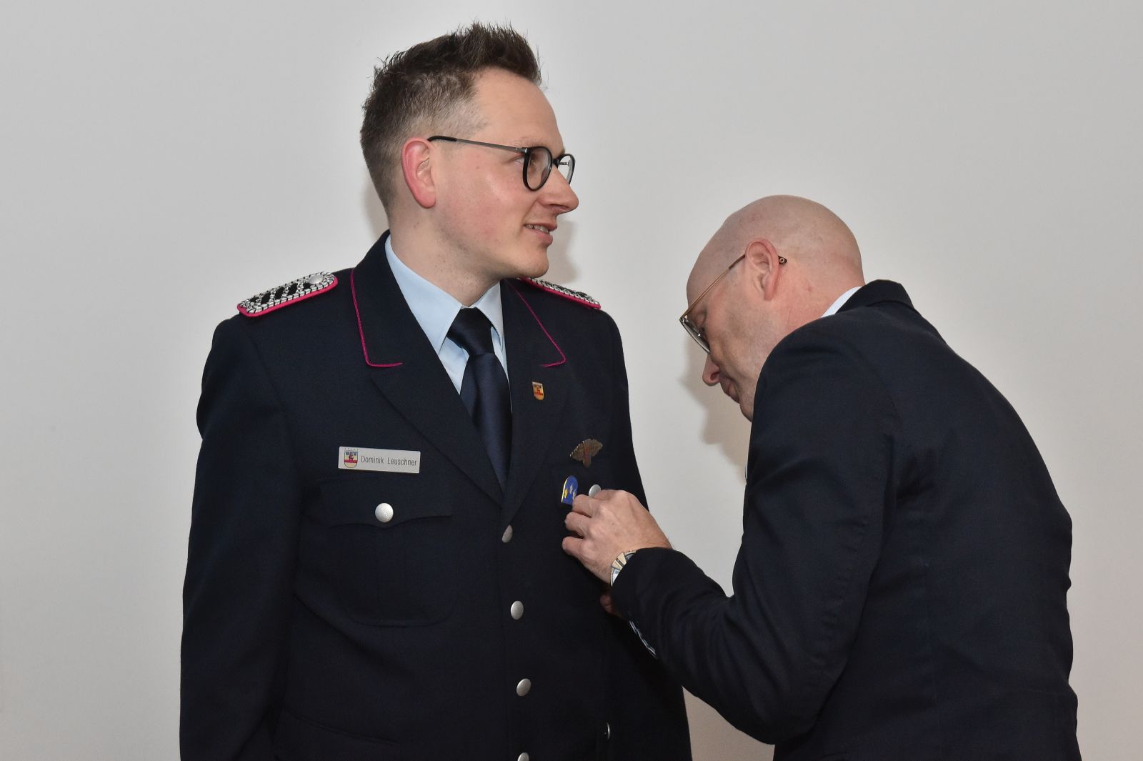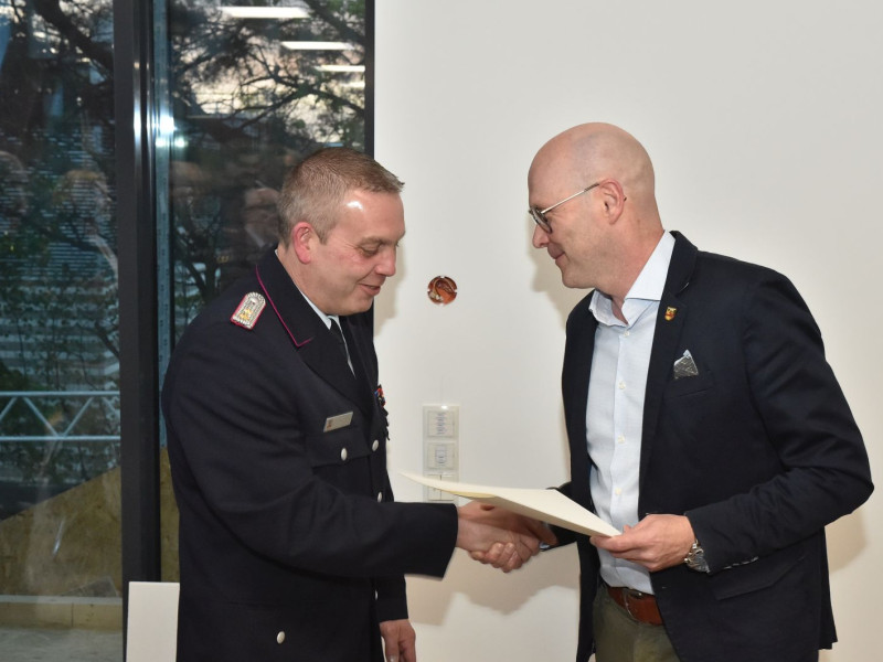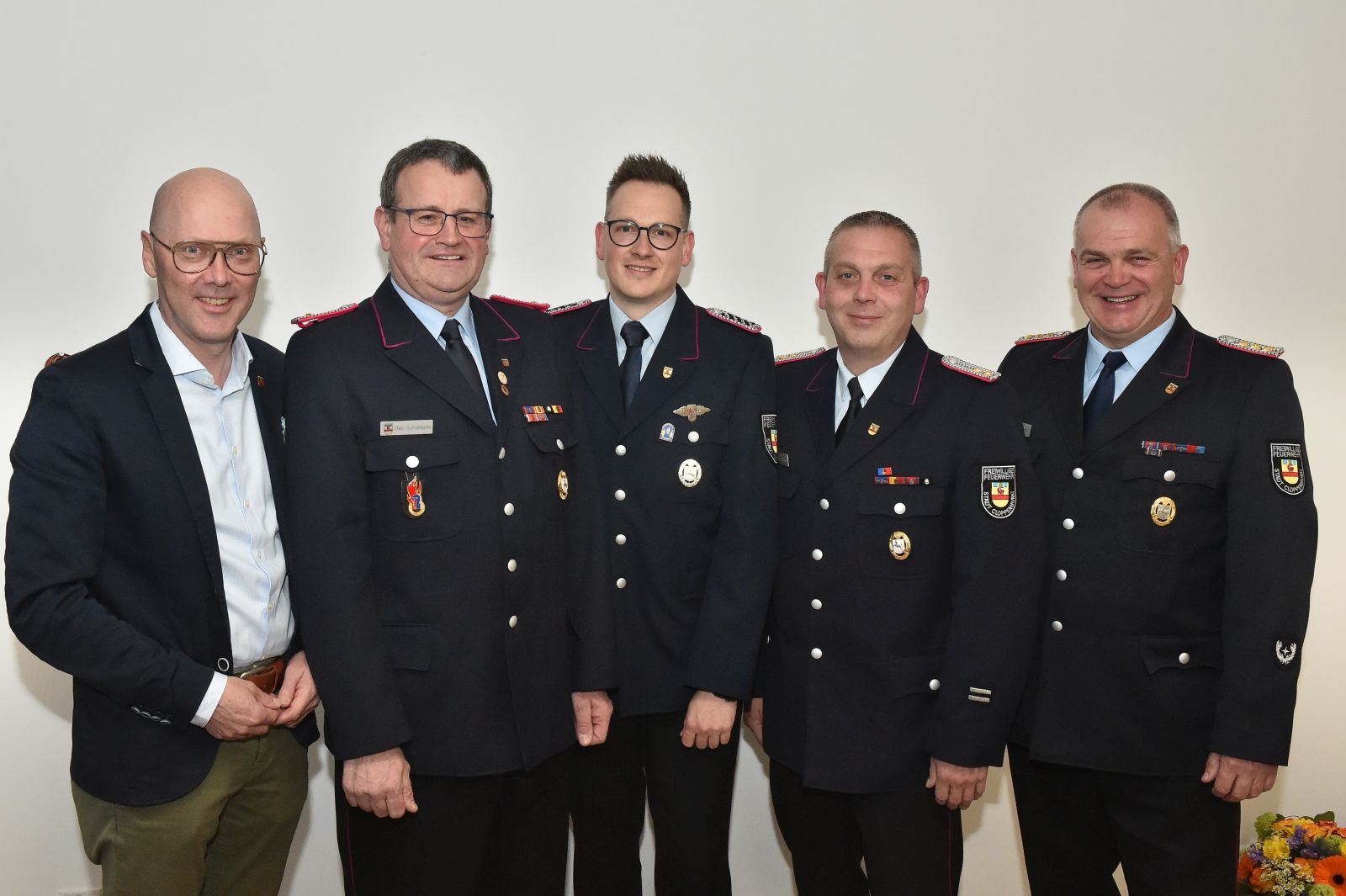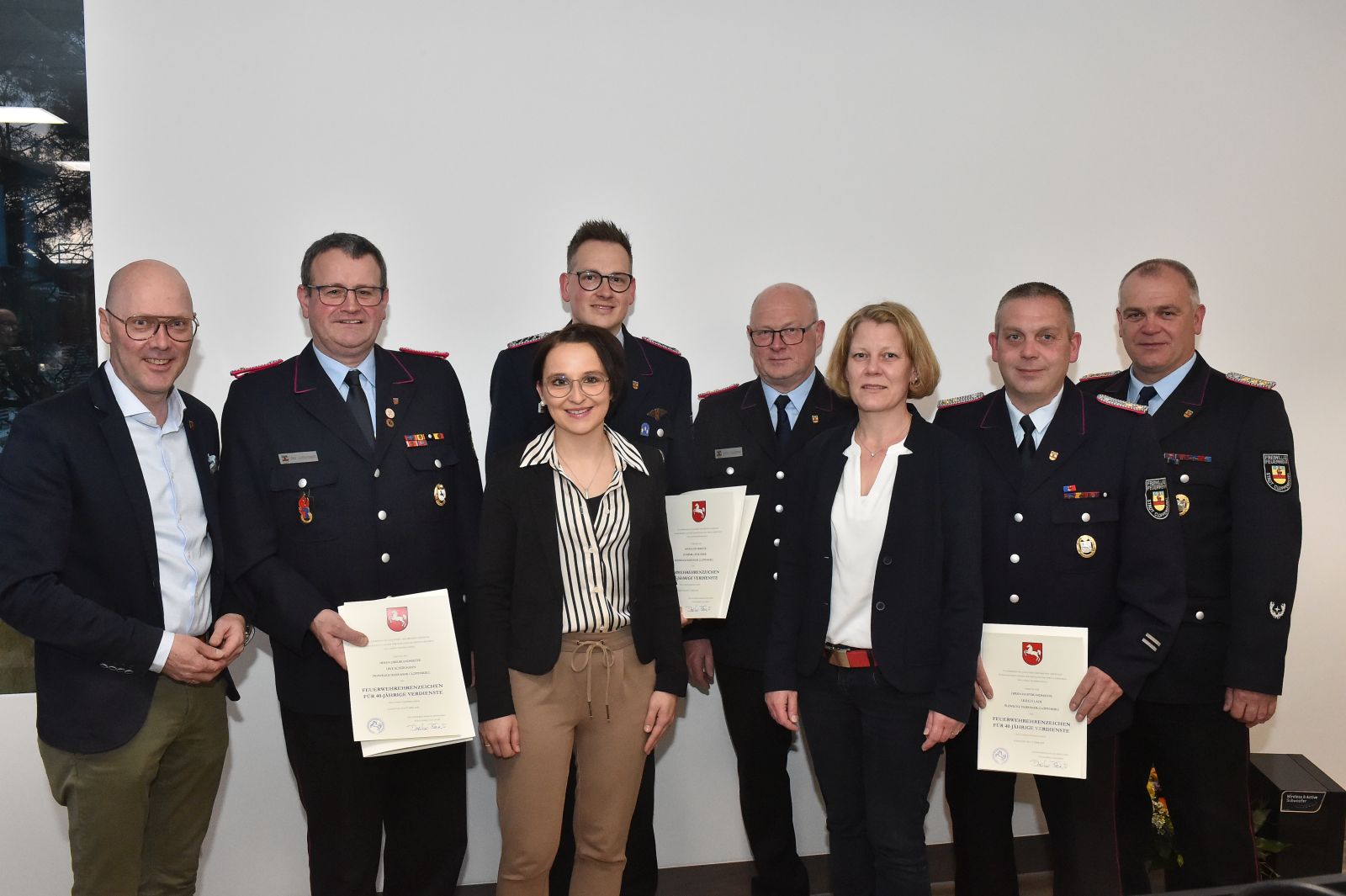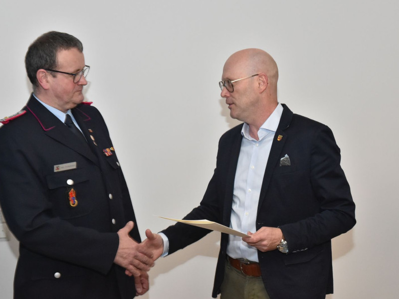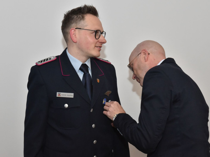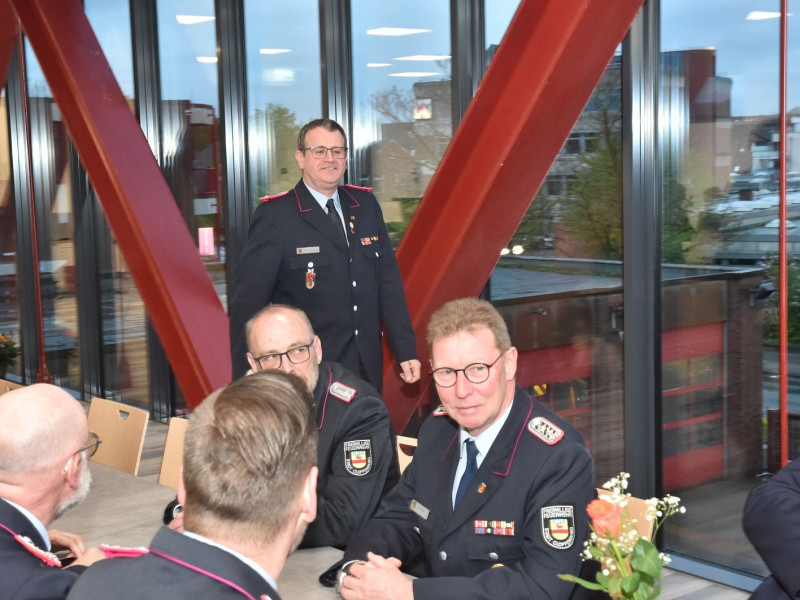 Der Bürgermeister war da, und wir waren alle schick in Uniform. Drei Kameraden galt es für langjährige Dienste in der Feuerwehr zu ehren. Der erste feierliche Anlass im neuen Versammlungsraum.