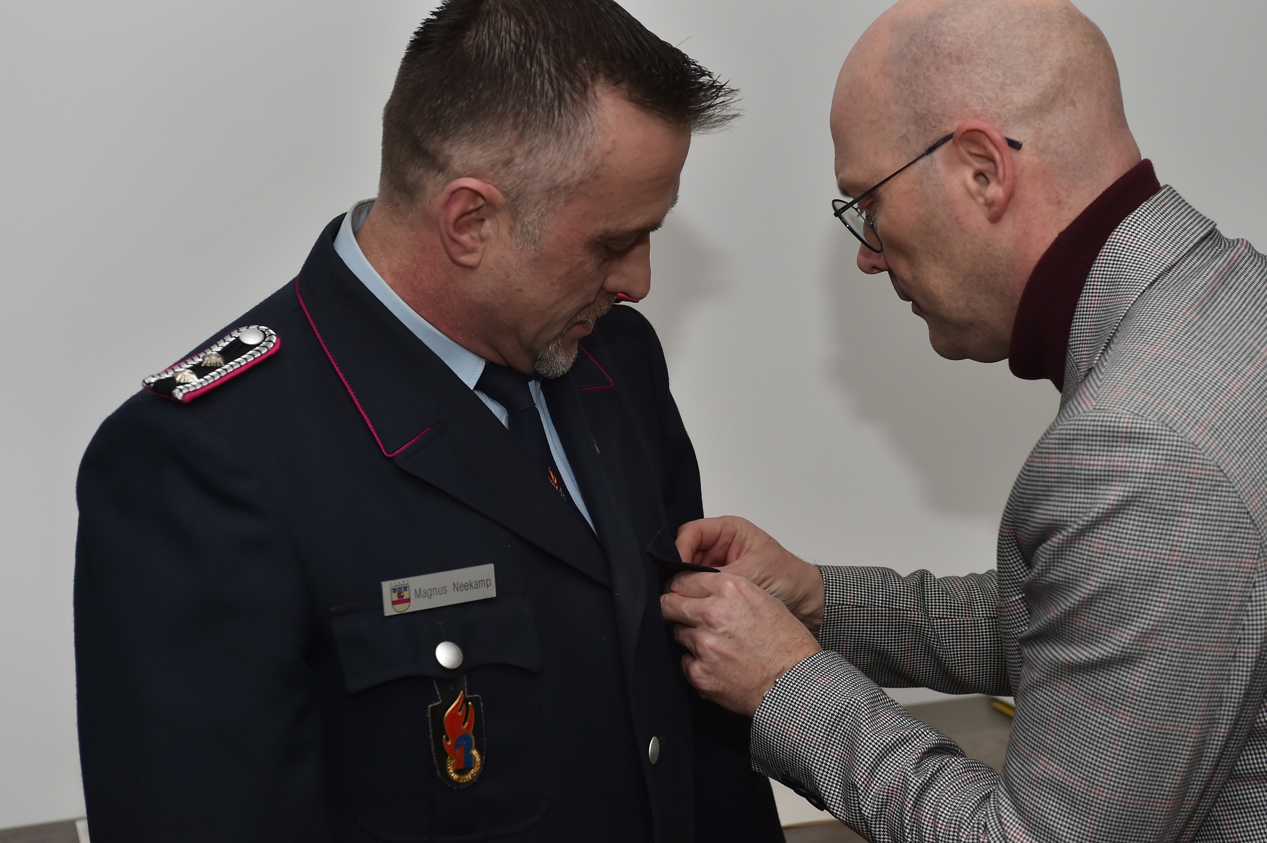 Mit 25 Jahren Mitgliedschaft erhält Magnus Neekamp die erste große Ehrung seiner Feuerwehrlaufbahn – ein Meilenstein, der seinen uneigennützigen Einsatz und seine Hingabe für die Allgemeinheit würdigt. Über die Feuerwehr Schwichteler und die Feuerwehr Steinfeld (Landkreis Vechta) fand er schließlich seinen Weg zu uns nach Cloppenburg.