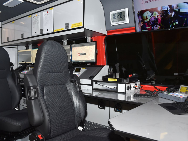 Das Fahrzeug hat 190PS und ist 5,5t schwer. Es verfügt über zwei PC Arbeitsplätzen mit jeweils zwei Bildschirmen. Von diesen können Einsätze dokumentiert und begleitet werden. Auf einem dritten Bildschirm können Informationen und Lagen bequem bereitgestellt werden. Außerdem sind fünf feste und fünf Handfunkgeräte verbaut. Ein mobiler Arbeitsplatz unterstützt bei komplexen Lagen zusätzlich. Die 5 Sitzplätze sind drehbar. Ein Funk -und Lichtmast von 6m Höhe sorgt für genug Empfang. Auch beim Mobilfunk wurde nicht gespart modernste 5G Technik unterschiedlicher Anbieter sorgt für Telefon -und Internetempfang. Das Auto kann durch eine größere Lichtmaschine und ein intelligentes Batteriemanagment auch an der Einsatzstelle ohne Fremdeinspeisung betrieben werden.