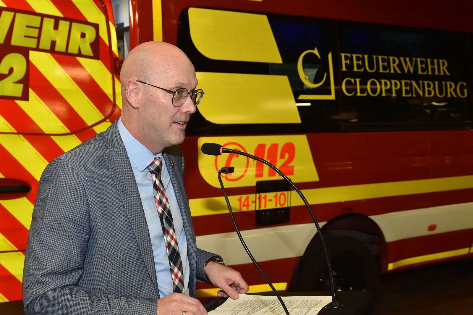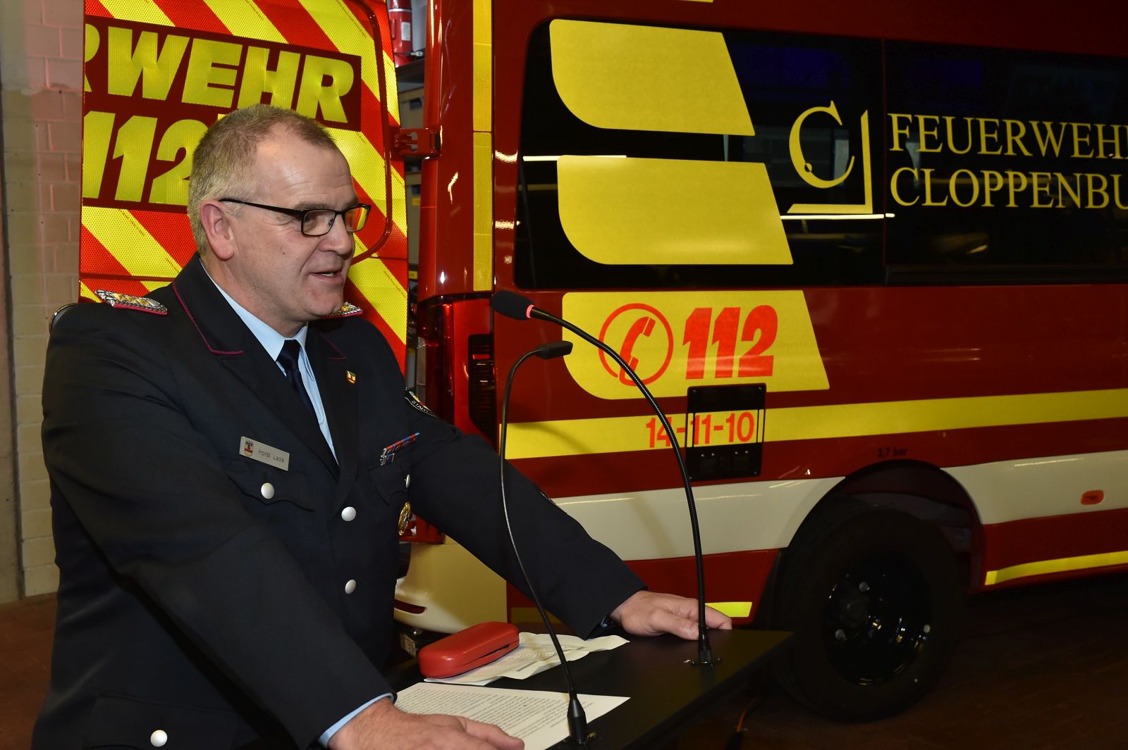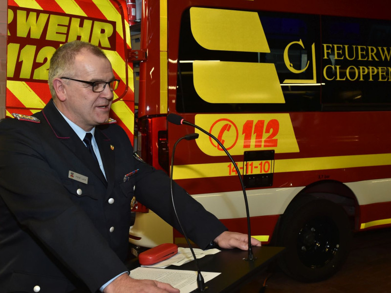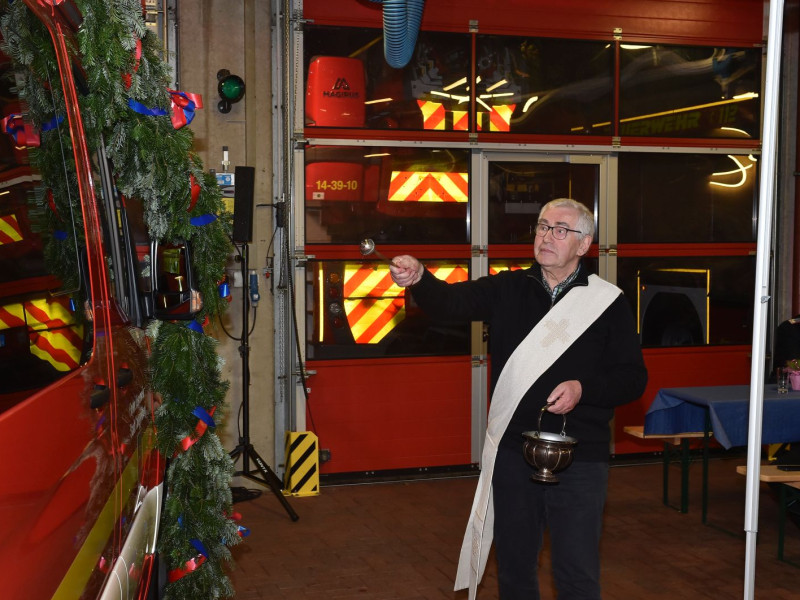 Mit 190.000 Euro sei das Fahrzeug günstiger geworden, als ursprünglich veranschlagt stellte Bürgermeister Neidhard Varnhorn mit Freude fest. Stadtbrandmeister Horst Lade wies darauf hin, dass das Fahrzeug mit seinen fünf Tonnen nun nicht mehr von "jedermann" gefahren werden könne und man doch über den Feuerwehrführerschein nachdenken müsse. Ein Extralob und Dankeschön gab es für unsere ELW Gruppe. Die hat das Auto seit dem Jahr 2021 geplant. Und das haben sie richtig gut gemacht! Tatsächlich viele Stunden und auch Berufliche Urlaubstage investiert. Danke dafür!