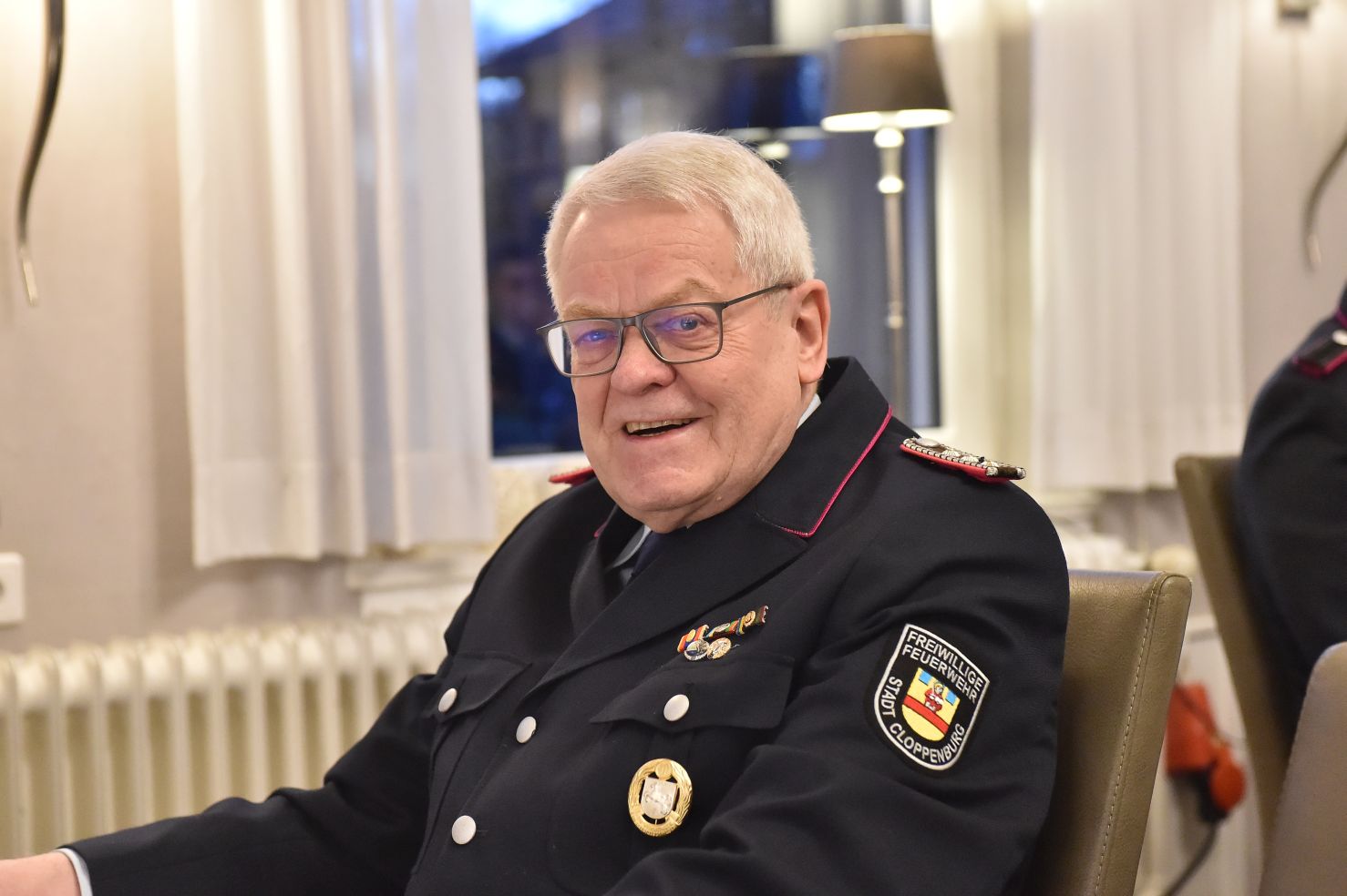 Dann gab es noch Silber. Nach 17 Jahren im Amt… Richtig, hier geht es wieder um Toto Imsiecke. Also, 17 Jahre Präsident der Altersabteilung, da kann man schon mal die silberne Ehrennadel des Oldenburgischen Feuerwehrverbandes raushauen!