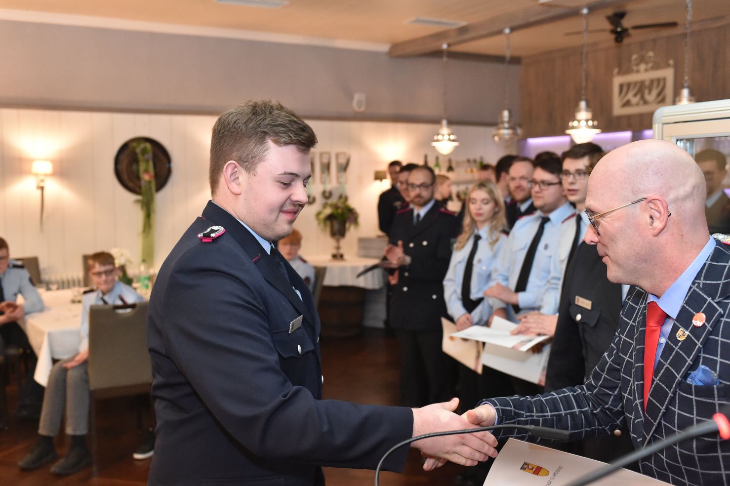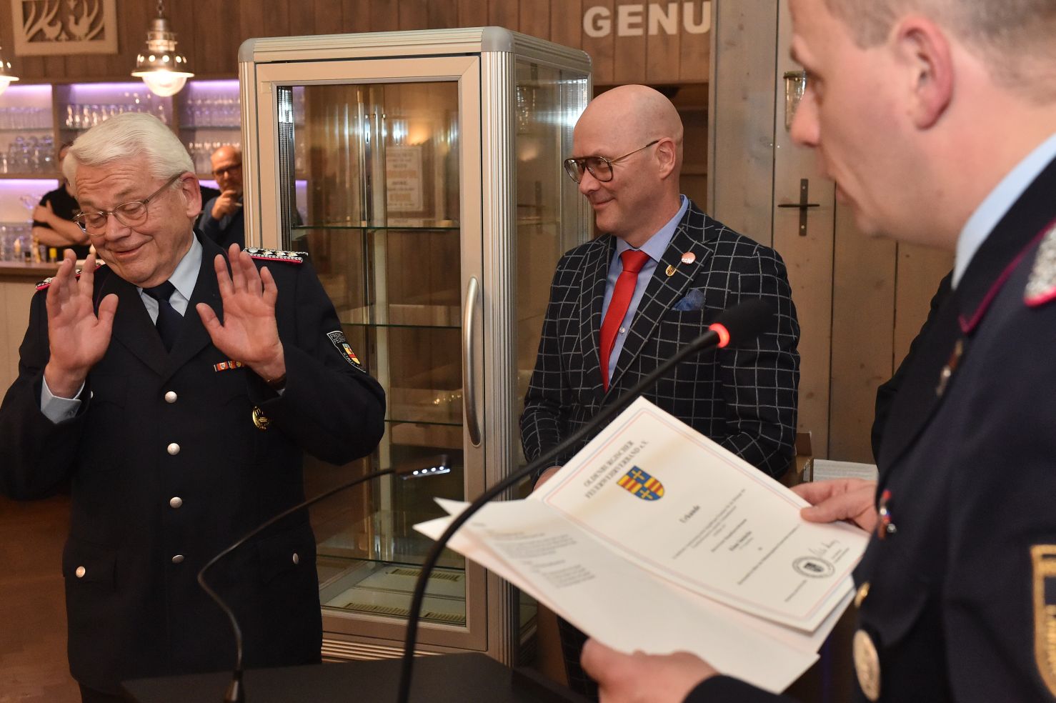 Wer meint, Jahresversammlungen sind öde und langweilig, der war noch nie auf unserer Generalversammlung. Hochkarätige Redner, bestes Essen, prickelnde Getränke und überhaupt, fast alles was man sich nur wünschen kann. Was habe ich vergessen? Ach ja, die Gäste. Beste Gäste! Das halbe Rathaus war da. Der Verwaltungsvorstand und das Ordnungsamt, angeführt von Bürgermeister Neidhard Varnhorn. Wobei unser Bürgermeister ja eher Gastgeber als Gast ist. Egal! Das DRK war da, das THW und die Johanniter. Die Polizei und unsere beiden musikalischen Abteilungen. Unsere Ehrenmitglieder, alle drei, sowieso. Polizeipräsident a.D. Hans-Jürgen Thurau, Bürgermeister a.D. Dr. Wolfgang Wiese und Reinhard Riedel als ehemaliger Ordnungsamtsleiter waren unserer Einladung ebenfalls gefolgt.