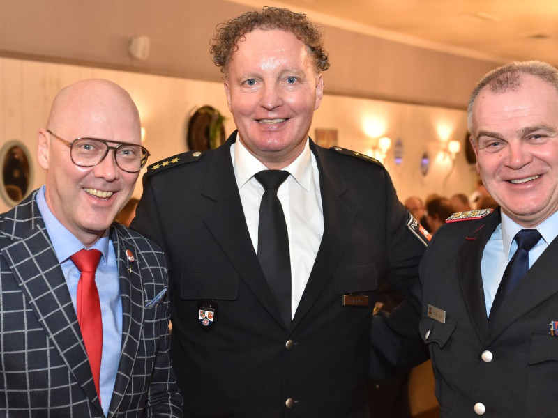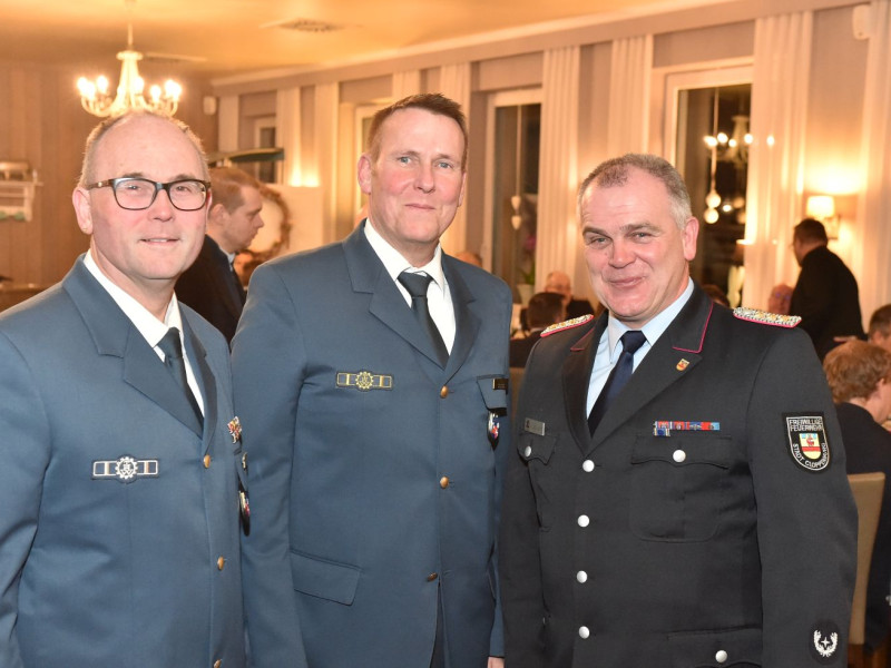 Übernahmen, Beförderungen und Ehrungen sind für unsere Generalversammlung das Salz in der Suppe. Fangen wir mit den Ehrungen an. Die kamen vom stellvertretenden Kreisbrandmeister Stefan Abshof. Die Verdienstmedaille mit Bandschnalle hatte er für Sebastian Brake, Frank Brümmer und Martin Horstmann dabei. Brake war jahrelang als Gerätewart tätig. Heute kümmert er sich als Kleiderwart um unsere Einsatzkleidung. Frank Brümmer blickt auf 28 Jahre Dienst in der Gefahrgutgruppe zurück. Und gut 10 Jahre lang war er Atemschutzgerätewart! Martin Horstmann, unser Mann für die fröhlichen Anlässe. Dreißig Jahre im Festausschuss! Ein tolles Dankeschön für drei engagierte Kameraden.
