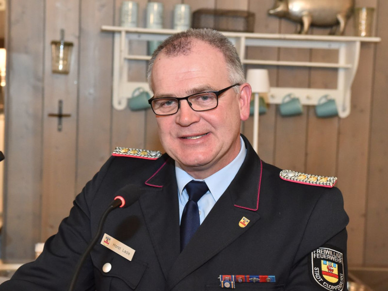In seiner Begrüßung schlug Stadtbrandmeister Horst Lade nachdenkliche Töne an. Wir hatten im letzten Jahr einige ernste medizinische Notfälle im Einsatz. Positiv ist, alle Kameraden, es waren nur Männer betroffen, haben alles gut überstanden!