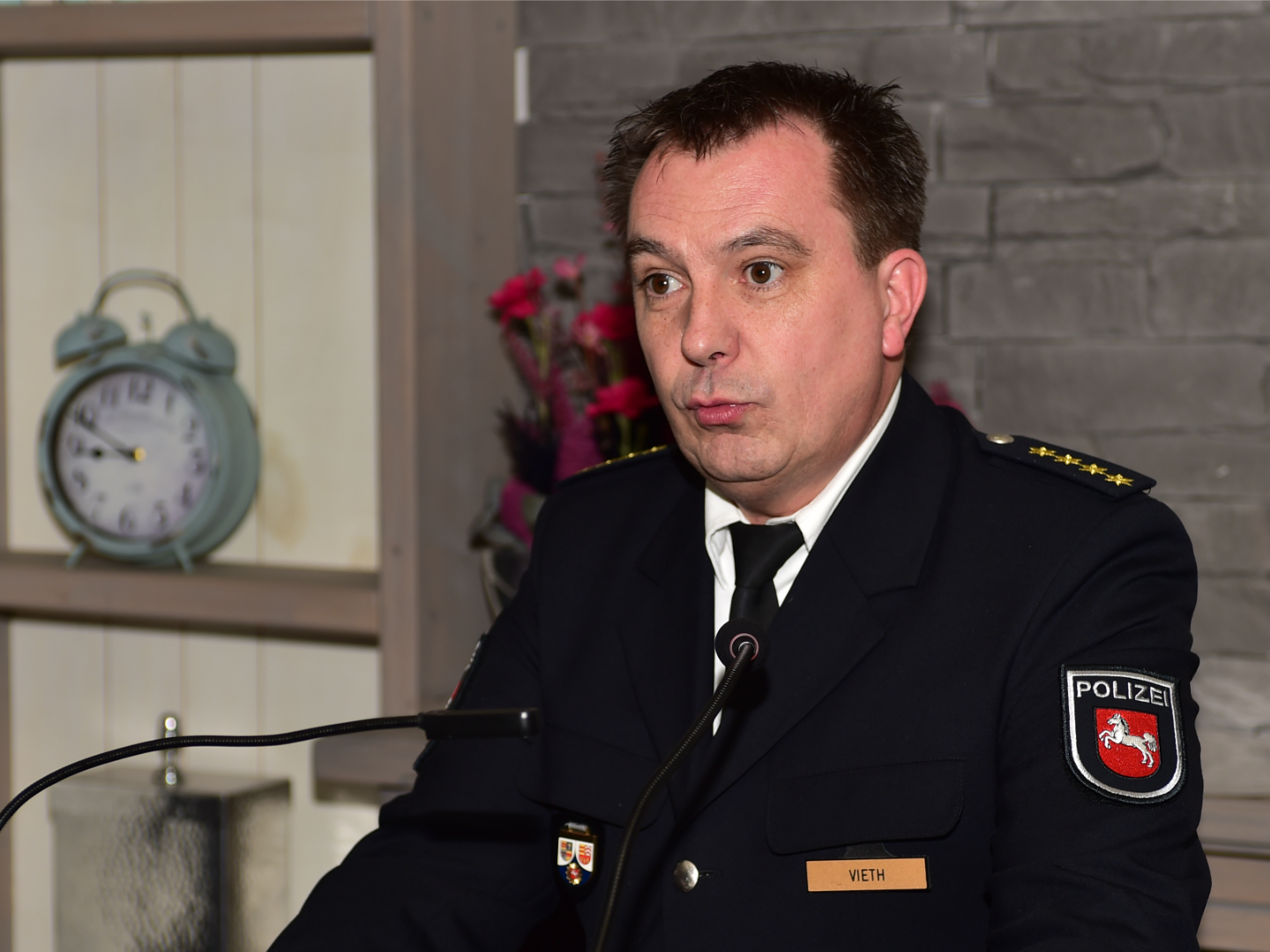 Dann kam das Grußwort aus der Blaulichtfraktion. Polizeidirektor Hendrik Vieth vertritt Blaulicht mit Bewaffnung. Und das war durch und durch etwas für die Feuerwehrseele. Anerkennung und Dank für die gute Zusammenarbeit. Das hören wir natürlich gerne. Wir hören auch gerne seine Bewunderung, dass wir das alles ehrenamtlich machen, während er und seine Kollegen dafür bezahlt werden. Aber gut, so ist es nun mal und wir freuen uns über eine wirklich gute Zusammenarbeit mit der Polizei in Cloppenburg.