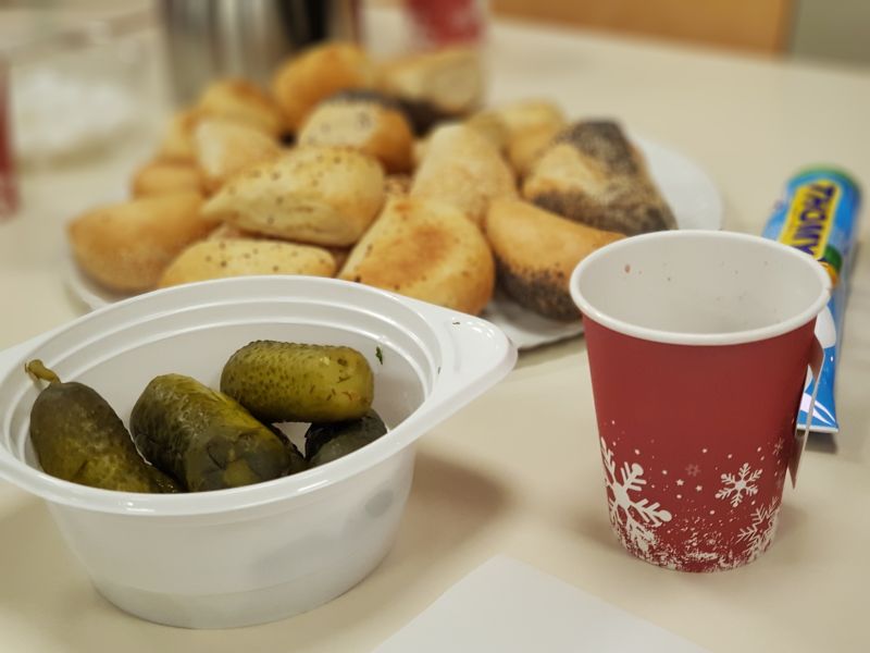 Traditionell gibt es bei unserem Jahresabschluß Würstchen, Brötchen, saure Gurken und na klar Glühwein. Bei einigen darf es auch mit einem Schuss Rum sein.