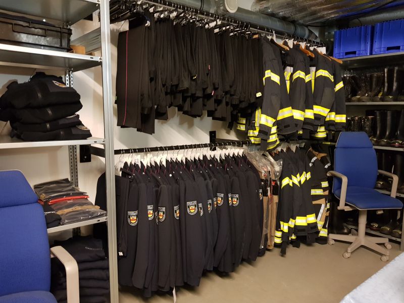 Die Aufgaben der Kleiderkammer sind das Einkleiden der Kameraden mit Einsatzkleidung und Uniform. Das Aushändigen von Wechselkleidung nach dem Einsatz und das Verteilen der gewaschenen Einsatzkleidung.